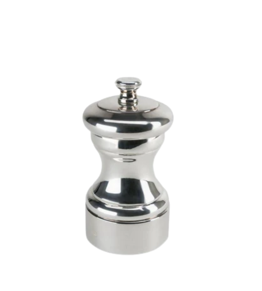 A timeless, elegant manual salt grinder from Peugeot’s historic Mignonette collection, finished entirely in high‑quality silver‑plated metal. A reissue of Peugeot’s classic 1874 model, this compact 10 cm mill brings refined style to your table while delivering precise, adjustable grinds of dry rock salt through a specially engineered Peugeot mechanism.